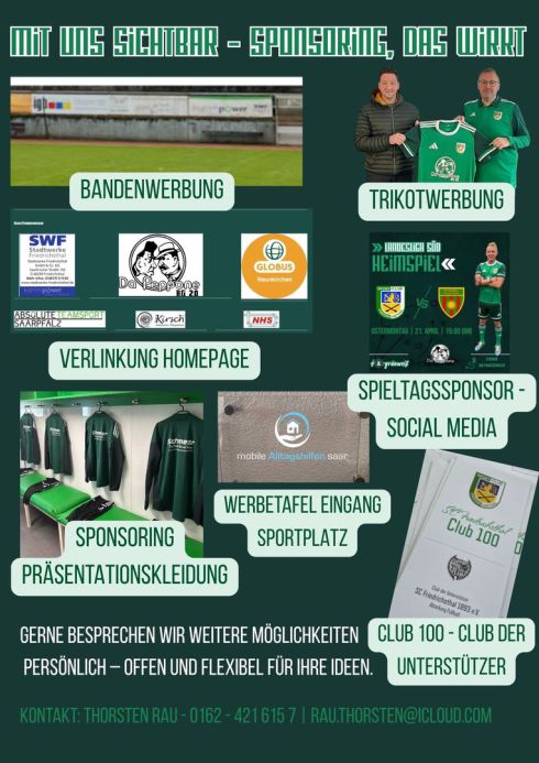 Wir garantieren Ihnen durch ein Sponsoring bei SC 1893 Friedrichsthal e.V. einen echten Mehrwert: Neben einem